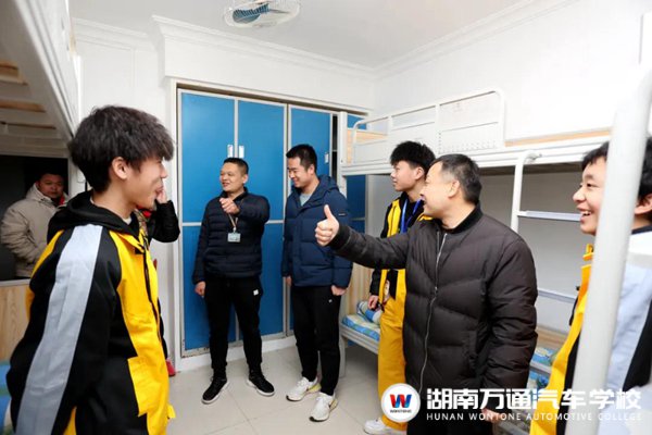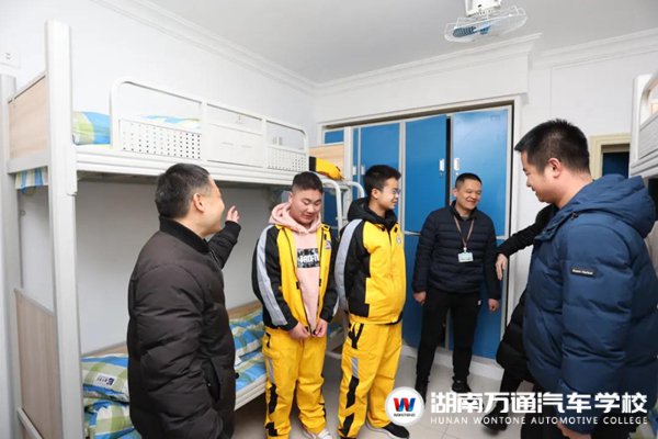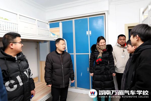 學(xué)校領(lǐng)導(dǎo)和老師們仔細(xì)查看了宿舍基礎(chǔ)設(shè)施、消防安全、環(huán)境衛(wèi)生等情況,并親切問候每位同學(xué)。針對(duì)同學(xué)們初入湖南萬通的感受與困惑,學(xué)校領(lǐng)導(dǎo)詳細(xì)解答同學(xué)們的各項(xiàng)問題,以緩解他們的迷茫。