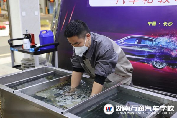 近日,在湖南萬(wàn)通技術(shù)大求真課堂上,專業(yè)老師黃老師帶領(lǐng)汽車(chē)專業(yè)的學(xué)生玩起了這門(mén)神奇的汽車(chē)技術(shù)——輪轂水轉(zhuǎn)印。