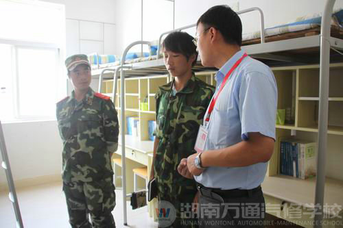 日前,筆者在湖南萬通汽修學(xué)校宿舍管理員的帶領(lǐng)下一行走進了該校的男生宿舍樓,眼前的情卻讓人眼前一亮:臉盆、牙杯、牙刷被整整齊齊放置一處,毛巾等日常生活用品被疊得整整齊齊,宿舍里方方正正的被子,仿佛走進了軍營一樣,筆者試圖想看看一些隱蔽處是否也夠干凈時,只見床底下的鞋子放得絲毫不亂,床底下,衣柜后面被收拾得一塵不染,宿舍管理員告訴筆者這都是半軍事化管理下的結(jié)果。