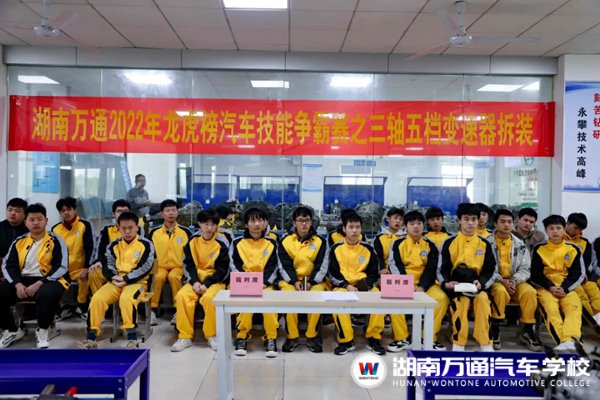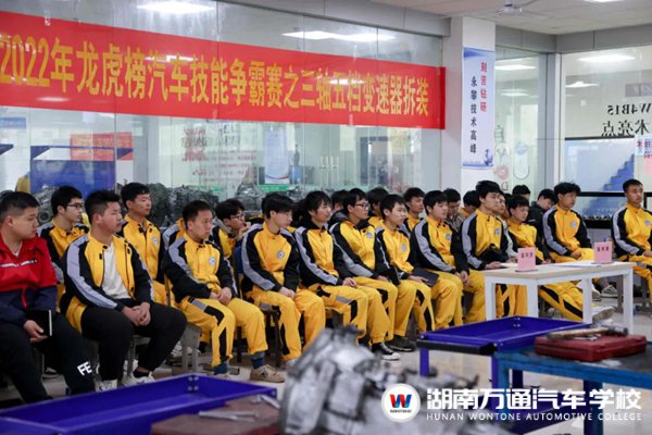 來來來!3月24日,湖南萬通龍虎榜汽車技能爭霸賽——三軸五檔變速器拆裝精彩開“戰(zhàn)”,快來圍觀學(xué)子們?nèi)绾握故菊嬲膶嵙Π桑?/span>