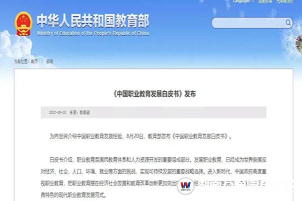 白皮書介紹,職業(yè)教育是國(guó)民教育體系和人力資源開發(fā)的重要組成部分。
