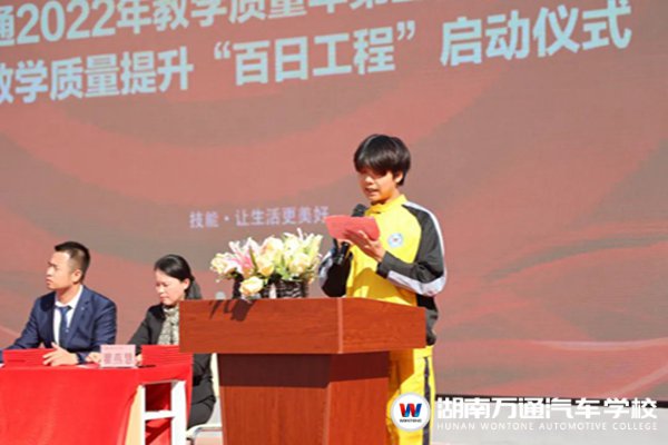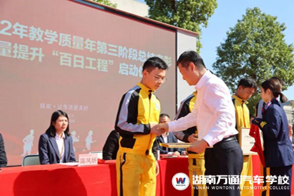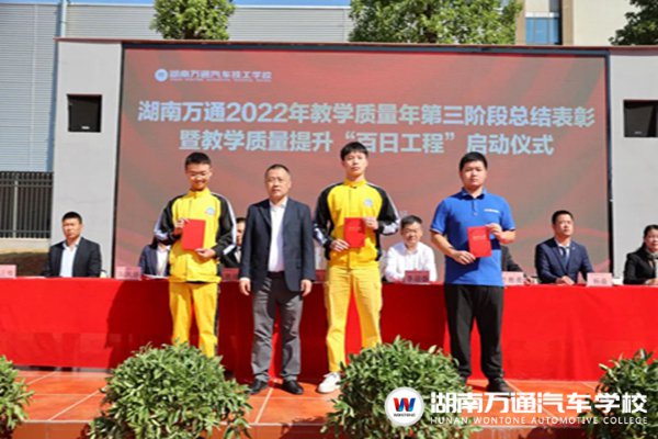 湖南萬通汽車技工學(xué)校李校長、校長助理張助、校區(qū)主任葉主任、學(xué)??荚嚳甲C中心負責人陳主任、學(xué)生處負責人楊主任、教務(wù)處負責人張主任、創(chuàng)就業(yè)指導(dǎo)中心池主管等校領(lǐng)導(dǎo),與全校師生出席本次典禮,見證榮耀時刻。