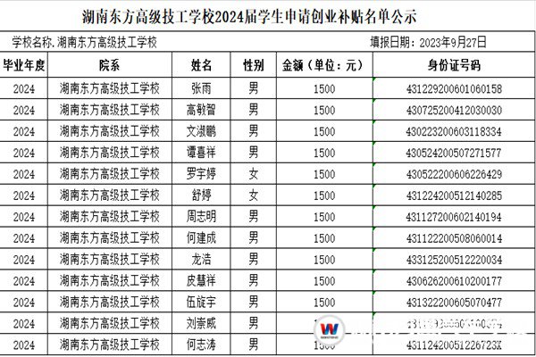 湖南萬(wàn)通汽車技工學(xué)校2024屆應(yīng)屆畢業(yè)生申請(qǐng)創(chuàng)業(yè)補(bǔ)貼金名單公示如下: