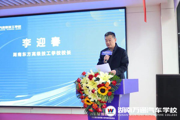 湖南東方高級技工學(xué)校(原湖南萬通汽車技工學(xué)校)校長李迎春首先向各級領(lǐng)導(dǎo)、來賓表示歡迎,向關(guān)心支持學(xué)校雙創(chuàng)發(fā)展的各級領(lǐng)導(dǎo)和各界朋友表示衷心的感謝!在致辭中,李校長表示學(xué)校將積極成為創(chuàng)新創(chuàng)業(yè)的“加速器”,從提高學(xué)生創(chuàng)業(yè)意識、促進創(chuàng)新創(chuàng)業(yè)教育與專業(yè)教育融合、產(chǎn)教融合匯聚“雙創(chuàng)”合力三方面著手,多措并舉地打造校園創(chuàng)業(yè)創(chuàng)新生態(tài)。