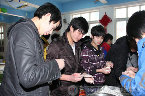 上午10點(diǎn),湖南萬(wàn)通汽修學(xué)校50余名同學(xué)在早就準(zhǔn)備好的配料前忙活開了,揉面,加餡,動(dòng)作嫻熟而游刃有余,就如同他們實(shí)訓(xùn)手中的扳手一樣,不一會(huì),1000多個(gè)圓滾滾的湯圓就做好了??粗龊玫臏珗A,中專二班的楊同學(xué)表示,這是他長(zhǎng)這么大以來(lái),第一次做湯圓,雖然大小有點(diǎn)不均勻,不過自己還是蠻滿意的,畢竟是自己做的,這種感覺很溫馨也很快樂。11點(diǎn)半左右,學(xué)子們?cè)谑程冒⒁痰膸椭鲁陨狭说谝诲仠珗A,“吃自己做的湯圓味道就是不一樣”,4S一班同學(xué)如是說道。