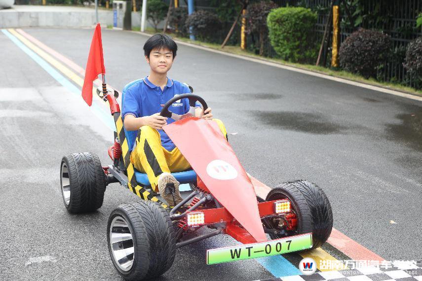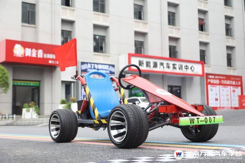 他們通力完成了卡丁車外形設(shè)計、加工組裝全過程!據(jù)牽頭的陳俊鋒同學(xué)介紹,在整個爆改過程中,他們用到了在學(xué)校學(xué)習的汽車底盤、新能源電機電控電池系統(tǒng)的整合、汽車美容、汽車鈑金、汽車噴涂等綜合專業(yè)知識。這個過程,不僅讓他們夯實了專業(yè)基礎(chǔ),更讓他們體會到將專業(yè)知識實踐到現(xiàn)實的成就感!