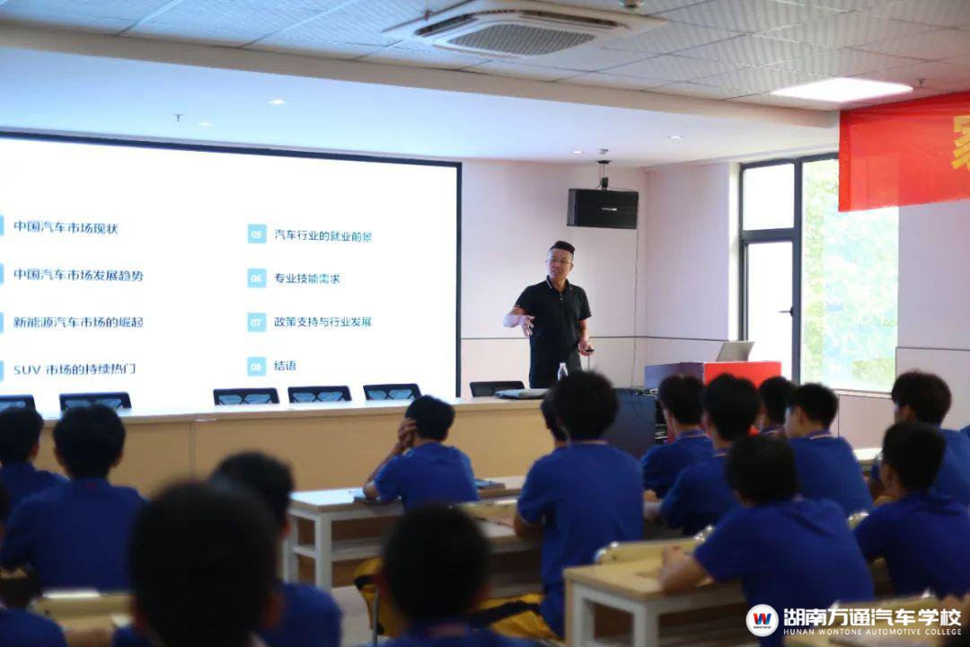 在日新月異的汽車行業(yè)中,每一位從業(yè)者都是時(shí)代的見(jiàn)證者與參與者。8月1日,湖南中拓瑞恒汽車服務(wù)有限公司的展廳經(jīng)理王恒,帶著他對(duì)汽車行業(yè)的深厚理解與獨(dú)到見(jiàn)解,走進(jìn)了湖南萬(wàn)通的校園,為學(xué)子們帶來(lái)了一場(chǎng)別開(kāi)生面的講座。