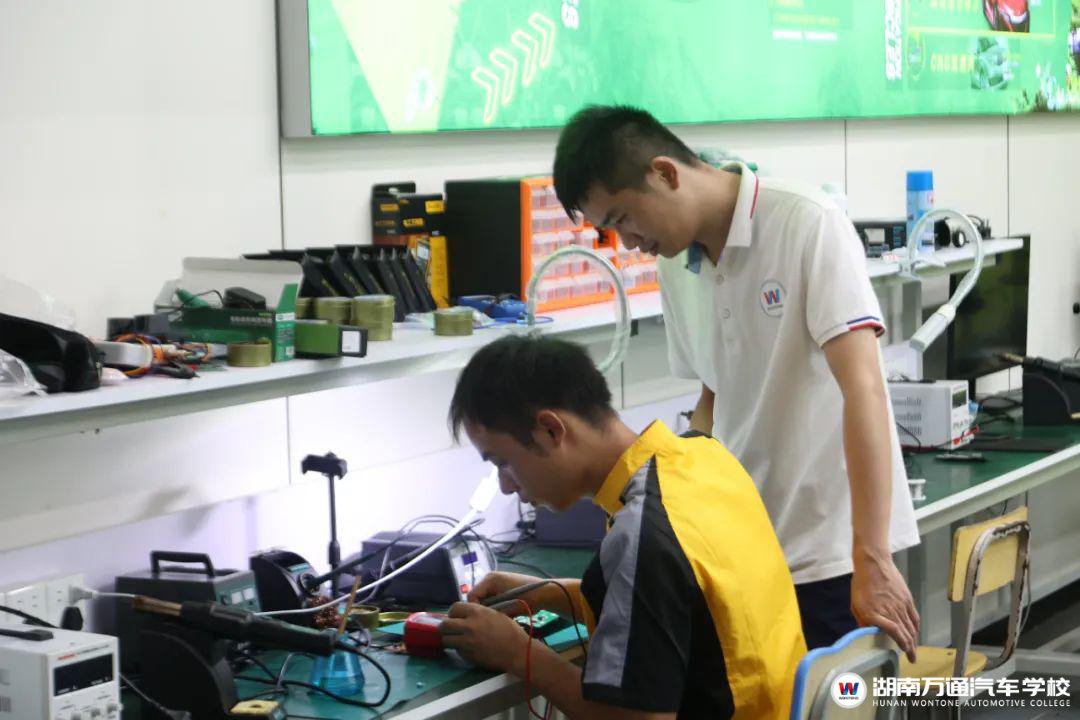 湖南萬(wàn)通就有學(xué)員在學(xué)習(xí)新能源汽車(chē)技術(shù)后,自己創(chuàng)業(yè)專(zhuān)修新能源汽車(chē),目前店里一個(gè)月的利潤(rùn)就有近10萬(wàn)元。
