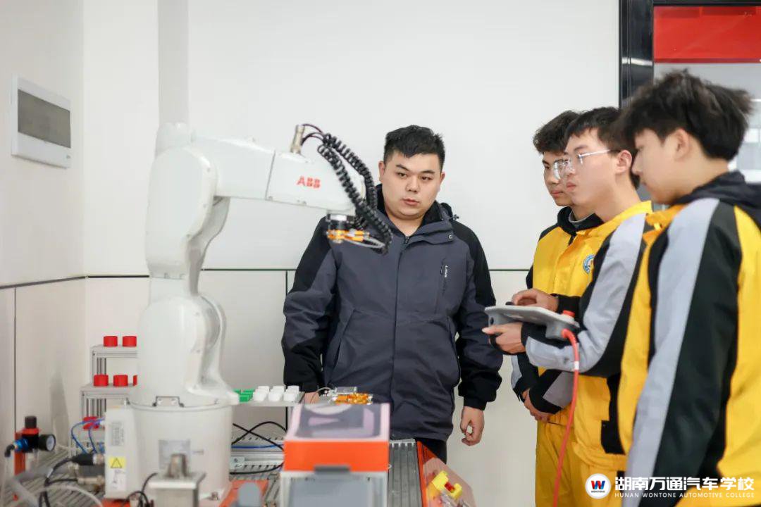 走進(jìn)湖南萬通的智能網(wǎng)聯(lián)實(shí)訓(xùn)中心,學(xué)生們正在調(diào)試激光雷達(dá)感知系統(tǒng)。這種與企業(yè)生產(chǎn)一線同步的教學(xué)場景,培養(yǎng)出深受市場歡迎的 "技能尖兵"。還有高鐵乘務(wù)專業(yè),同學(xué)們將在模擬車廂中學(xué)習(xí)到崗位技能。工業(yè)機(jī)器人專業(yè),我們?yōu)閷W(xué)生提供了發(fā)那科機(jī)器人、西門子PLC編程設(shè)備,從為基礎(chǔ)工控的高中生也可以從零學(xué)起。