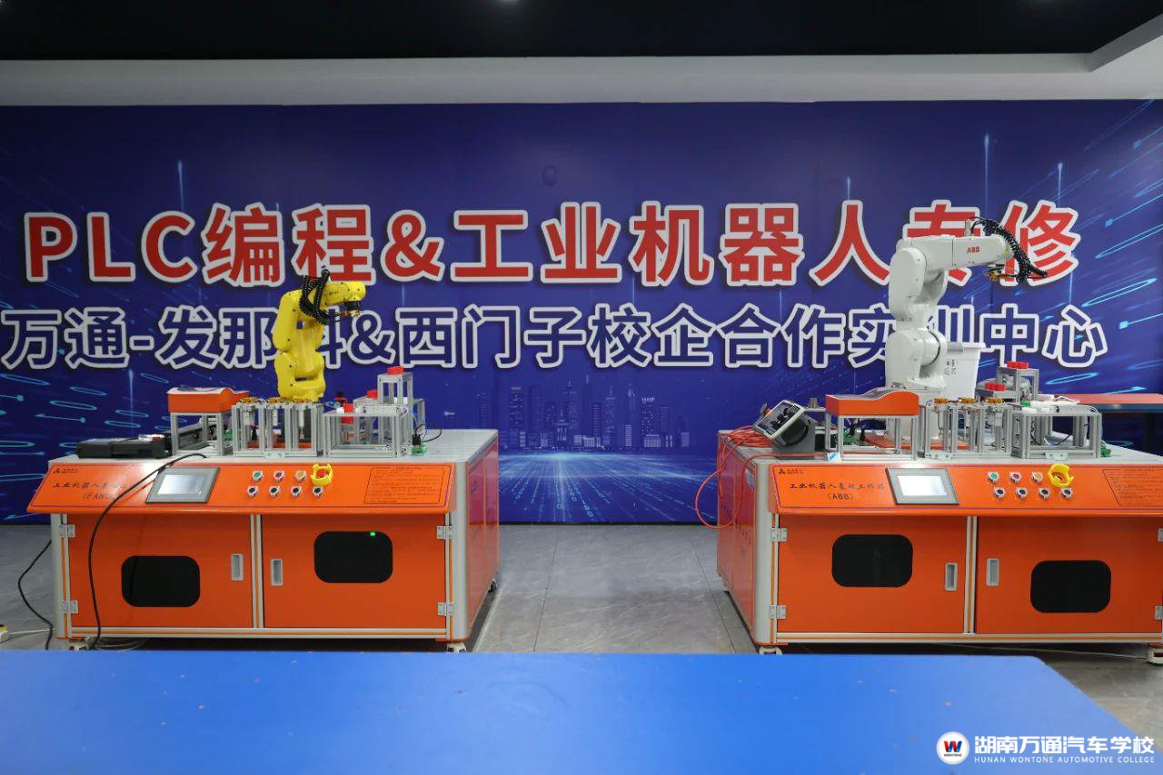 走進湖南萬通的工業(yè)機器人實訓中心,這里不僅是教學場所,更是微縮版智能工廠。學校投入百萬元引進的西門子系列PLC編程器及發(fā)那科工業(yè)機器人設備,構建起實訓矩陣。學員可以在真實設備上完成軌跡編程、機器人保養(yǎng)、RobotStudio程序運用等多個核心模塊訓練。僅需要5個月左右的時間就能獨立完成機器人調試。