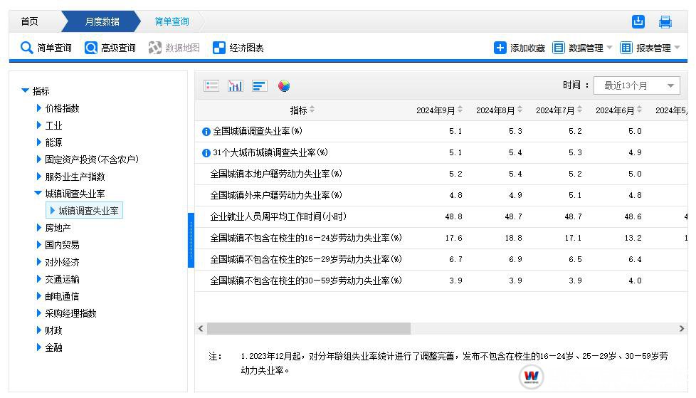 2024年10月22日統(tǒng)計局公布,9月份,全國城鎮(zhèn)不包含在校生的16-24歲勞動力失業(yè)率為17.6%,不包含在校生的25-29歲勞動力失業(yè)率為6.7%,不包含在校生的30-59歲勞動力失業(yè)率為3.9%。即使是去除了“在校生”,2024年9月份16~24歲勞動力的失業(yè)率依然高達17.6%,這是一個可怕的數(shù)字。