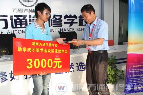 每一位學(xué)生的成長,都離不開學(xué)校對他們的細(xì)心栽培。湖南萬通汽修學(xué)校 “獎助勤勉”助學(xué)活動,是對學(xué)子們成才的助推劑,幫助他們實現(xiàn)汽修成才夢。據(jù)此次助學(xué)成才獎學(xué)金活動負(fù)責(zé)人臧主任介紹,今年暑假學(xué)校推出的助學(xué)政策對象主要是參加高考的考生,凡是達(dá)到考生所在省份高職專科分?jǐn)?shù)線以上者報讀汽車檢測與維修專業(yè)可獲得湖南萬通助學(xué)成才獎學(xué)金,其中,高考分?jǐn)?shù)達(dá)到一本分?jǐn)?shù)線及以上入學(xué)即享獎學(xué)金10000元;高考分?jǐn)?shù)達(dá)到二本分?jǐn)?shù)線及以上入學(xué)即享獎學(xué)金5000元;高考分?jǐn)?shù)達(dá)到三本分?jǐn)?shù)線及以上入學(xué)即享獎學(xué)金3000元。目前已獲3000元獎學(xué)金的蔣澤政同學(xué),正是考到了三本的分?jǐn)?shù)線。“今天頒發(fā)的獎學(xué)金還只是學(xué)校對學(xué)生助學(xué)活動中的一個小項目,在新學(xué)期開學(xué)時,會有更多政策惠及學(xué)子,切實為他們減輕物質(zhì)負(fù)擔(dān),讓他們在學(xué)校安心學(xué)習(xí)。”臧主任向記者介紹道。