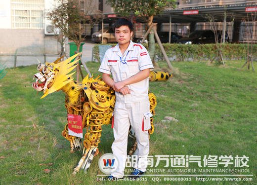 隆峰自小就愛拆裝,像是家里自行車、DVD機(jī)、遙控器等等,皆是難逃“魔掌”,但同時(shí)也造就了他的極好的動(dòng)手能力與興趣累積!來到了湖南萬通的第一天,隆峰就很是歡喜,因?yàn)檫@所汽修學(xué)校,完全是與腦海中的美好想象100%的極度吻合了,無論是環(huán)境、設(shè)備、氛圍等等,皆是他所愛的技術(shù)樂園!而因之前的摩托維修經(jīng)驗(yàn),隆峰更是“如魚得水”般自由自在地徜徉在這舒適的學(xué)習(xí)海洋中,學(xué)汽修這則“法門”完全是遂心應(yīng)手的暢快!