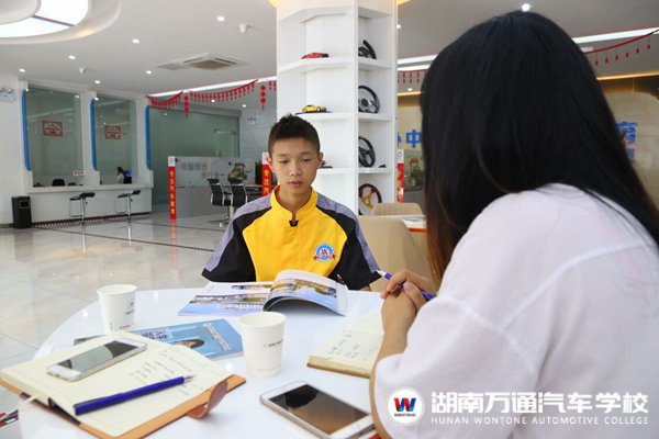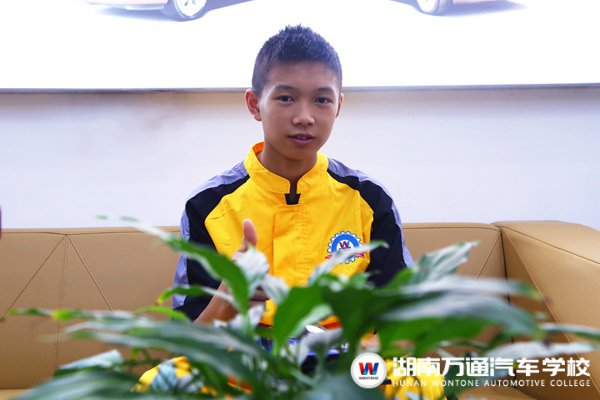 蔣歡童,15歲邵陽人。在中考結(jié)束后隨父親來到了湖南萬通汽車學(xué)校。據(jù)了解,在一個月前他和父親就一起來過學(xué)校,對設(shè)施設(shè)備和教學(xué)模式十分滿意,所以早早來報了名。