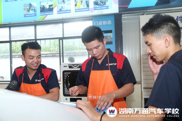 最初他選擇在汽車美容店自學(xué),但漸漸他發(fā)現(xiàn)自學(xué)中遇到的問題很多,師傅的講解也并不全面。思慮再三,他決定去專業(yè)的學(xué)校報(bào)一個(gè)美容班,湖南萬通汽車學(xué)校就是他最終的選擇。“湖南萬通的老師和汽修店的師傅完全不一樣,老師會(huì)認(rèn)真教我每一個(gè)細(xì)節(jié),我做得不對的地方會(huì)及時(shí)指正,還會(huì)耐心告訴我為什么不能那樣做,原理都告訴我了,想犯錯(cuò)都困難。”李斌笑著說。