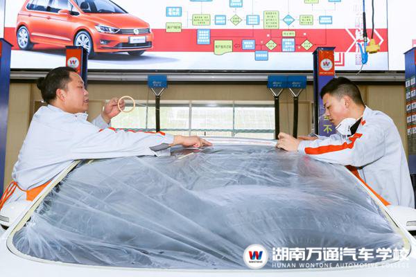 劉盼說(shuō):“汽車美容是我考慮了很久才決定的,主要是覺(jué)得這個(gè)專業(yè)入門門檻不高,而且是短期速成,時(shí)間成本低,我這種零基礎(chǔ)的學(xué)生肯定能學(xué)會(huì),而且學(xué)汽車美容的話,以后不管是就業(yè)還是創(chuàng)業(yè)都有很大的發(fā)展空間。”在選擇專業(yè)時(shí),劉盼其實(shí)做了很詳細(xì)的分析和規(guī)劃。入校已經(jīng)一周的他,已經(jīng)熟練掌握了很多汽車美容基礎(chǔ)技能,比如拋光打蠟、鍍晶、前擋風(fēng)玻璃拆裝等等。他很幽默的跟我們說(shuō):“萬(wàn)通的老師很有耐心,而且專業(yè)講解的非常詳細(xì)清晰,課程基本都是以實(shí)訓(xùn)為主,所以根本不用擔(dān)心學(xué)不會(huì)。”