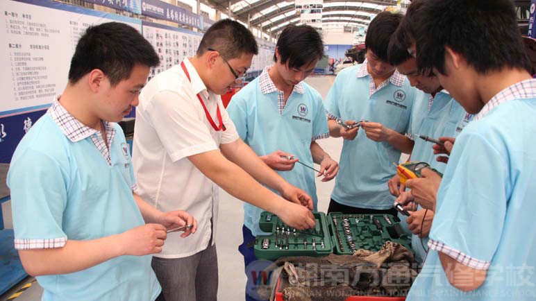 湖南萬通汽車維修中心占地面積超過1000平方米,擁有14臺整車,主要以大眾、奇瑞汽車為主,分為電器實訓區(qū)、發(fā)動機實訓區(qū)以及底盤訓練區(qū)。學生在維修中心主要學習汽車電器、空調(diào)系統(tǒng)、汽車底盤、變速器、齒帶、燃油濾清器等技能課程,是同期其他學習以后進行整車實訓的主要部分。學生通過在汽車維修中心的實際操作,掌握一手過硬的汽車維修技能。