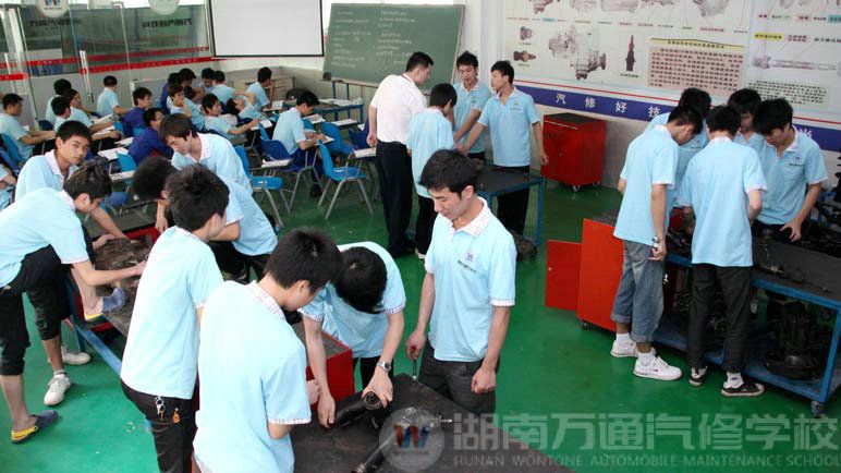 發(fā)動(dòng)機(jī)是汽車維修技能中不可或缺的版塊,而湖南萬(wàn)通作為專業(yè)的汽修教育學(xué)校,在發(fā)動(dòng)機(jī)維修版塊也投入了大量的教學(xué)資源。3個(gè)發(fā)動(dòng)機(jī)一期拆裝實(shí)訓(xùn)室、2個(gè)發(fā)動(dòng)機(jī)二期拆裝實(shí)訓(xùn)室、1個(gè)發(fā)動(dòng)機(jī)理實(shí)一體化實(shí)訓(xùn)室以及五十多臺(tái)發(fā)動(dòng)機(jī)為學(xué)生提供了多樣的實(shí)際操作平臺(tái)。占地面積接近600平方米的汽車發(fā)動(dòng)機(jī)實(shí)訓(xùn)中心,可同時(shí)供180多人同時(shí)學(xué)習(xí)和實(shí)際操作。在此基礎(chǔ)上,湖南萬(wàn)通也會(huì)經(jīng)常舉辦與發(fā)動(dòng)機(jī)有關(guān)的比賽來(lái)激發(fā)學(xué)生對(duì)汽車維修的學(xué)習(xí)興趣,提高學(xué)生的技能水平。
