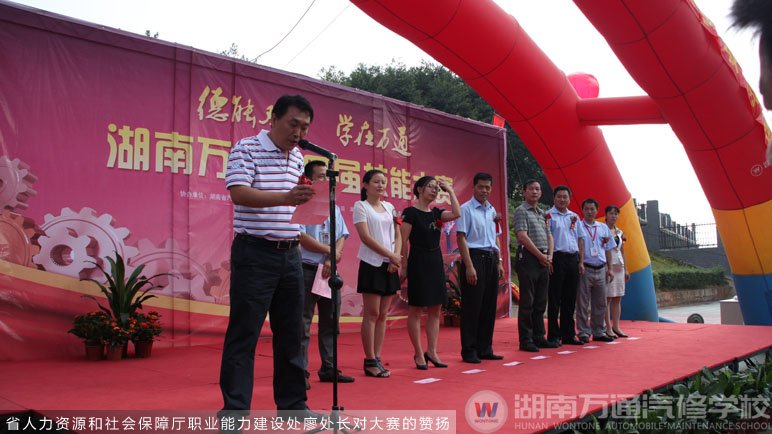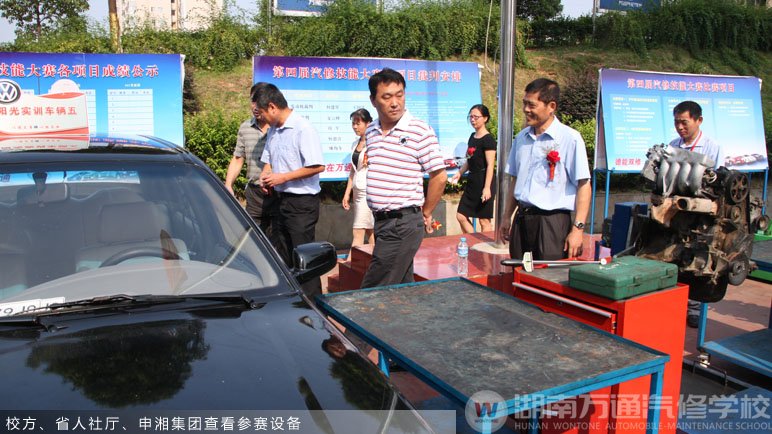 大賽現(xiàn)場,湖南萬通汽車學(xué)校校長葛孝良、校黨委書記陳齊雄、校長助理潘太煌等校領(lǐng)導(dǎo)均出席了開幕式。陳書記就大賽精神發(fā)表了重要講話,并對參賽的學(xué)生選手寄予了厚望。本次大賽還受到了省市領(lǐng)導(dǎo)的高度重視,湖南省人力資源和社會保障廳職業(yè)能力建設(shè)處寧處長與廖處長蒞臨大賽開幕式現(xiàn)場。其中,廖處長從我國汽車行業(yè)的快速發(fā)展分析了汽修人才的緊缺情況,并對湖南萬通汽車學(xué)校的辦學(xué)實力與教學(xué)特色表示了大力肯定。此外,申湘汽車集團(tuán)李經(jīng)理、國合快車人事部何經(jīng)理、比亞迪汽車服務(wù)有限公司張經(jīng)理、博世汽車黃紅梅經(jīng)理也來到開幕式現(xiàn)場,對本屆技能比武大賽表示了濃厚興趣和對高度期望。“湖南萬通第四屆技能比武大賽開始!”開幕式最后,葛校長宣布大賽正式啟動,選手們的技能風(fēng)采即將在全體師生面前展現(xiàn)。