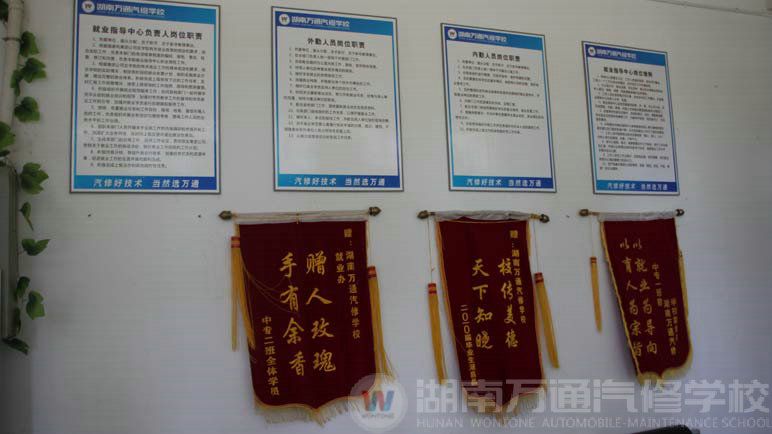 創(chuàng)就業(yè)指導(dǎo)中心是湖南萬通服務(wù)的核心,一進(jìn)入里面有學(xué)生送的錦旗、萬通汽修全國就業(yè)網(wǎng)絡(luò)、學(xué)生就業(yè)后的生活照、工作照以及就業(yè)良好的就業(yè)之星以及他們的發(fā)展經(jīng)歷,以幫助即將畢業(yè)的學(xué)子。以及規(guī)范的本地、外地就業(yè)流程圖和學(xué)生就業(yè)推薦流程。